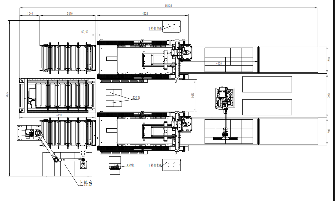 Der Gesamtprozess gestaltet sich wie folgt: Das Material wird auf die hydraulische Plattform geladen – es wird etikettiert – das intelligente Verteilsystem weist das Material automatisch der Verarbeitungsmaschine zu – die Maschine verarbeitet das Material – es wird zugeschnitten – nach der Verarbeitung wird das Material zur Entladeplattform geschoben, um dort auf die Zuweisung durch das intelligente Verteilsystem zu warten, wodurch eine kontinuierliche und ununterbrochene Verarbeitung des Plattenmaterials erreicht wird.