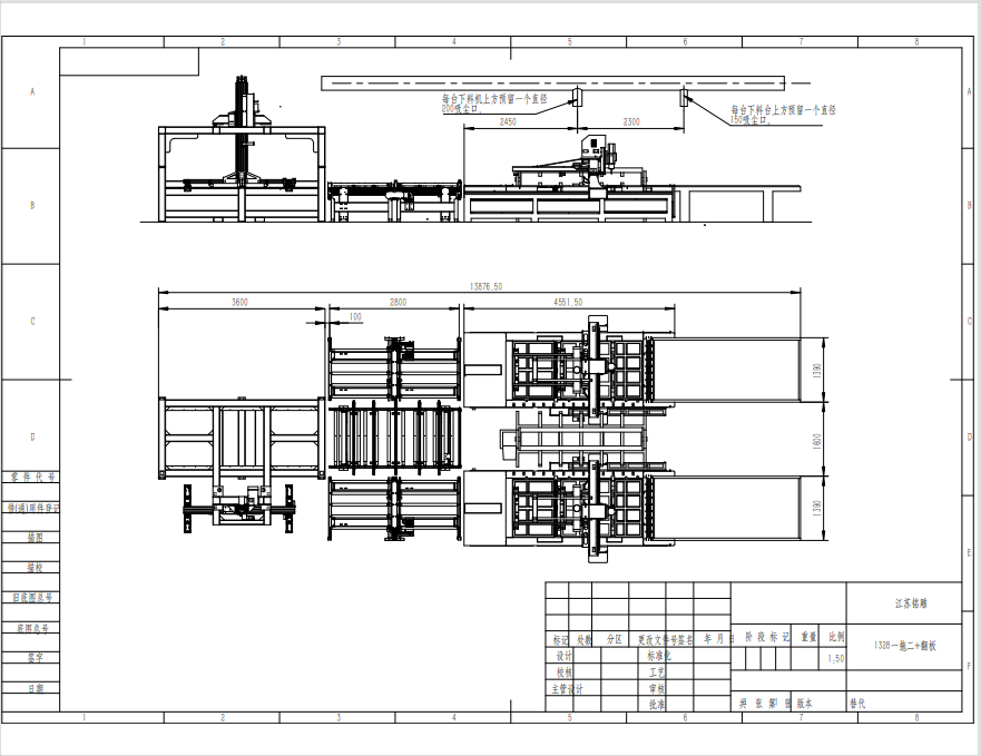 Diese Produktionslinie kann Bearbeitungsschritte wie das Bohren von Scharnierlöchern, das Nuten und das Profilieren der Türblattrückseite durchführen. Der Gesamtprozess verläuft wie folgt: Materialzufuhr zur Hydraulikplattform – automatische Zuführung zur Bearbeitungsmaschine – Bohren von Scharnierlöchern, Stanzen von Löchern, Einbringen von Richtnuten und Bearbeiten der Glasrückseite – Transport zur Wendemaschine zum Wenden der Tür – Rücktransport zum Türformzentrum – Bearbeitung und Zuschneiden der Türform auf der Vorderseite – Transport des fertigen Produkts zur Auswurfplattform bei gleichzeitiger Materialzufuhr – manuelles Anbringen von Etiketten und Entnahme des Materials.